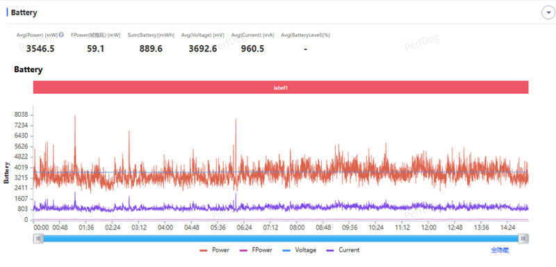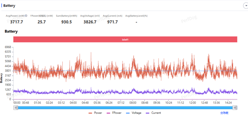 当然,游戏的功耗也是水涨船高,平均功耗达到3.71W。但每帧能耗控制的还不错,25.7mW每帧。