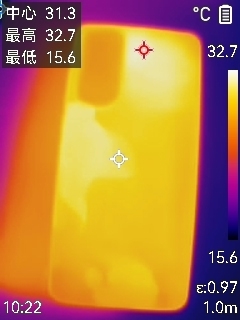 背部最高温度为32.7度。温差仅1.4度。