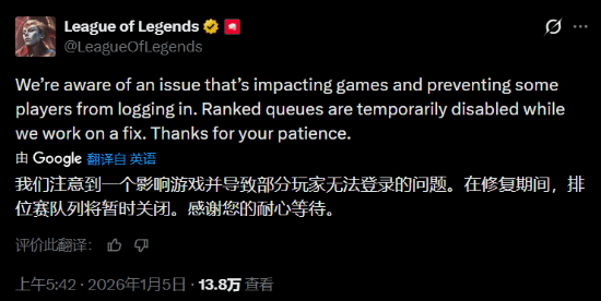 2.《英雄联盟》服务器突然维护!神秘BUG让玩家无法登录