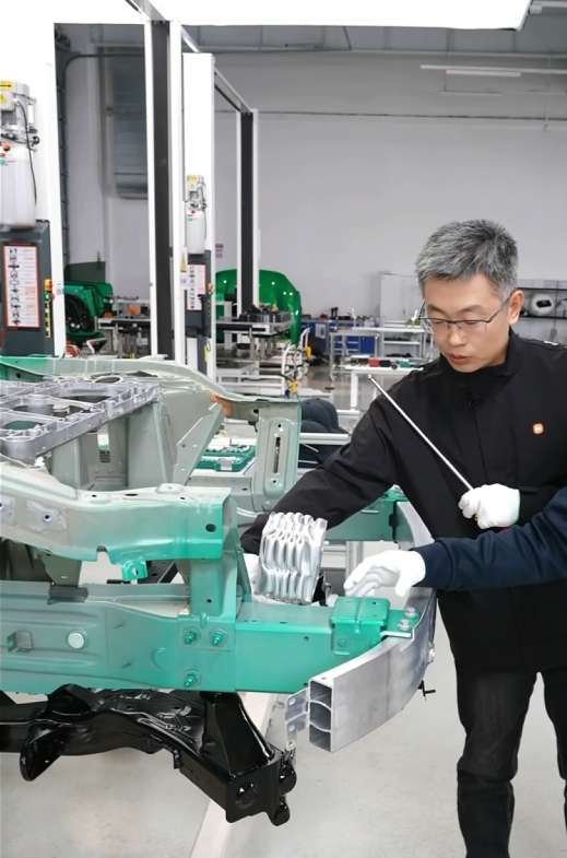 还有,当时我们说大压铸的维修成本高,雷总还专门拉着强哥指出了 YU7 那么长的一个可替换后吸能盒。。。