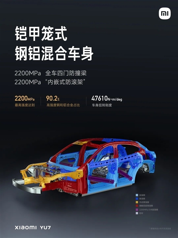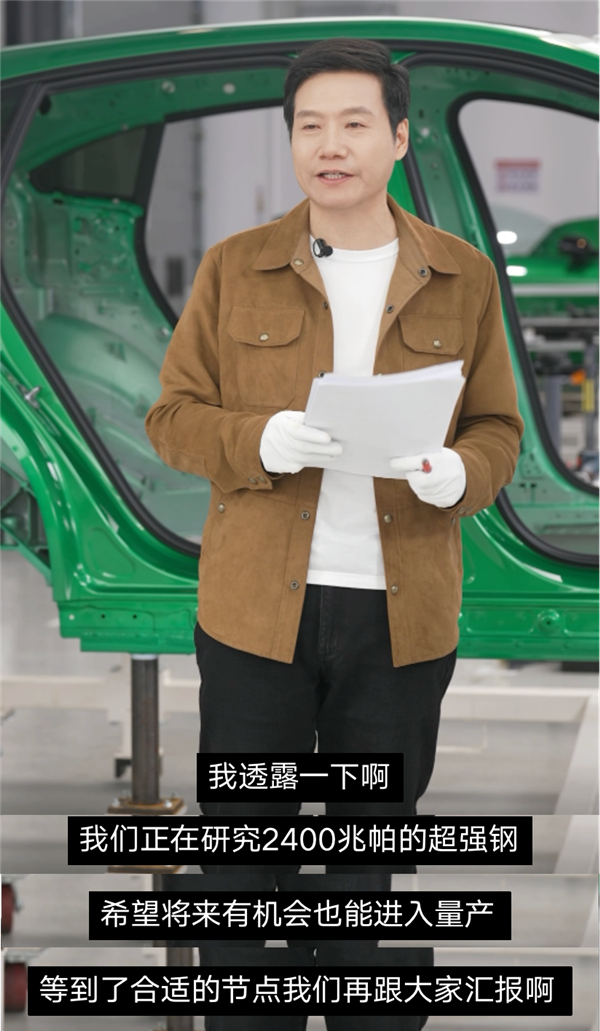 所以小米面对质疑也是很自信的说随便测,说到这,雷总也透露他们正在研发 2400 MPa 的高强度钢,反正陆续有来。