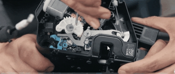 在日常正常状态下,YU7的外部开门功能均通过电控解锁来实现;而当发生碰撞的瞬间,YU7会立即切换为机械开锁模式,此时棘轮会瞬间卡合到位,外部也能够以机械方式将门打开。