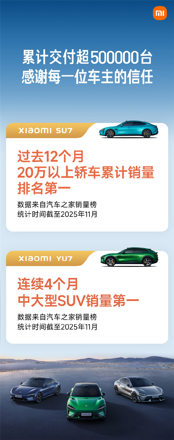 去年推出的小米YU7表现同样出色,曾连续4个月占据中大型SUV销量榜首。这两款车型的累计交付量已突破50万台,这样的成绩在中国当下的车企中实属罕见。