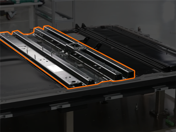 电池采用CTB(cell to body)结构,可与车身协同抗压,其上方配备4条高强度钢,其中两条强度为1500MPa,另外两条为2000MPa。