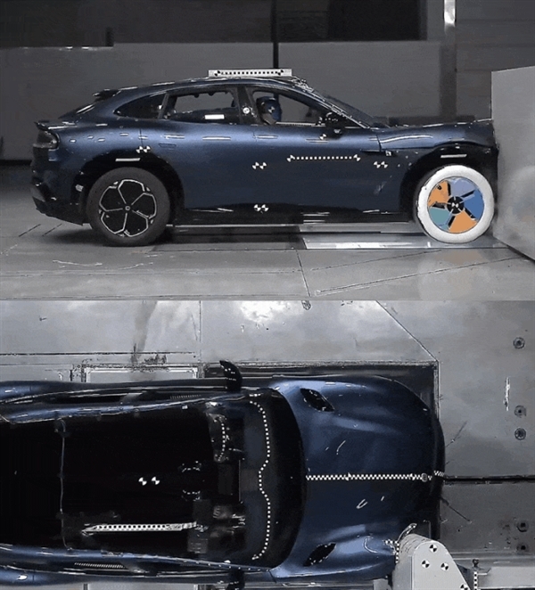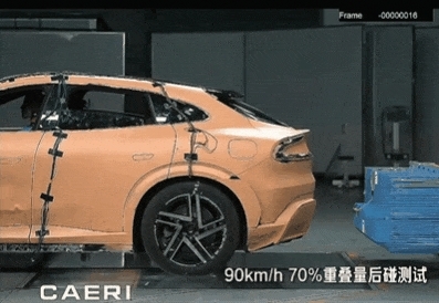 结果就是,YU7 接受了超过国标 1.8 倍速度(90km/h)的 70% 重叠后碰测试,电池与乘员舱都没受损。