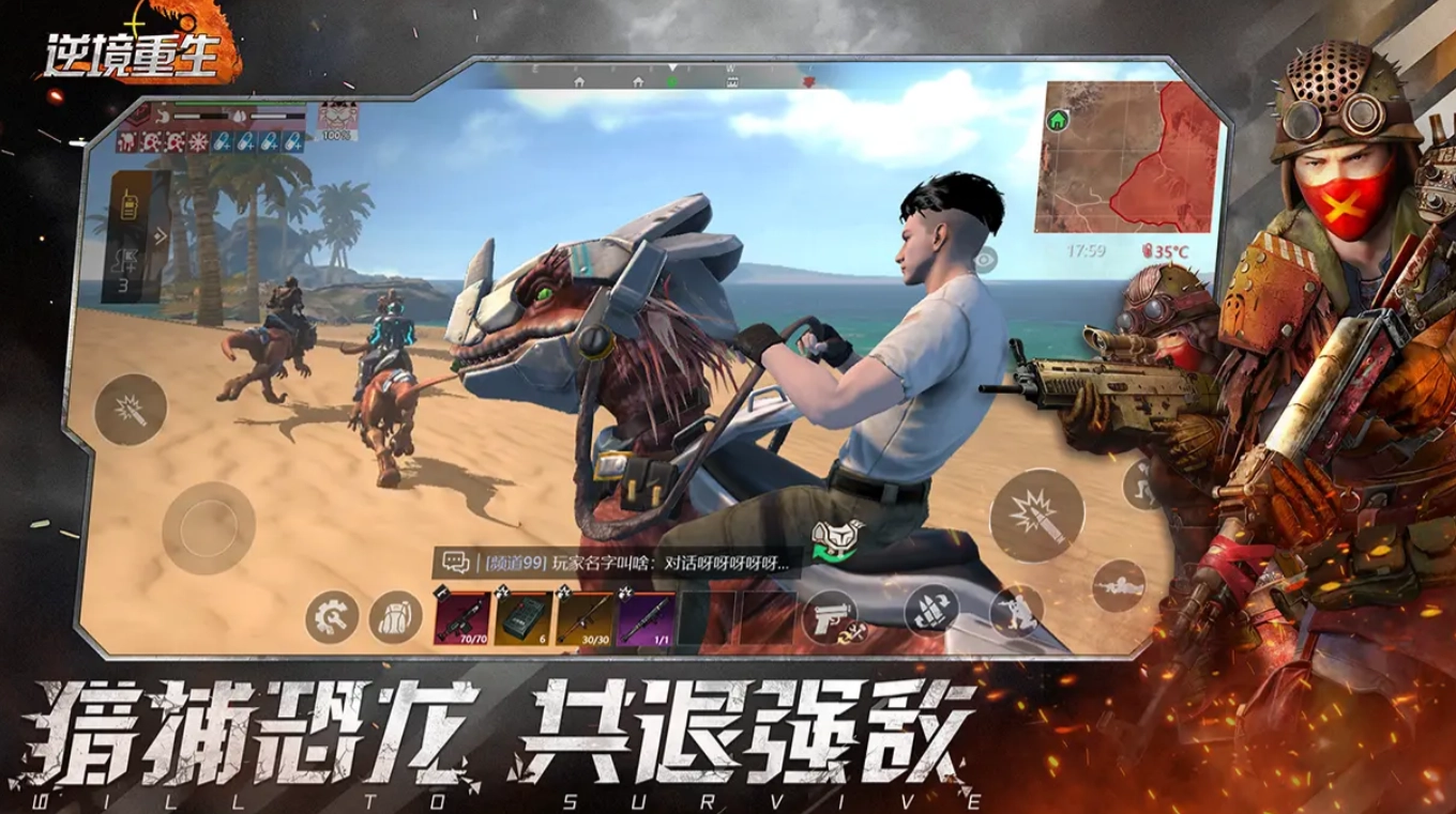 在《逆境重生》里,玩家会踏入一个危机四伏的末日时代。此时代中,玩家的对手不再是恶劣环境,而是从地底复苏的恐龙。因之前人类过度使用DNA改造技术,世界上涌现出众多变异恐龙,像机械霸王龙、火焰三角兽、迅猛龙等都在其中。这些恐龙占据了人类昔日的栖息地,玩家作为恐龙时代的幸存者,得通过猎杀恐龙,来获取更多生存机会。