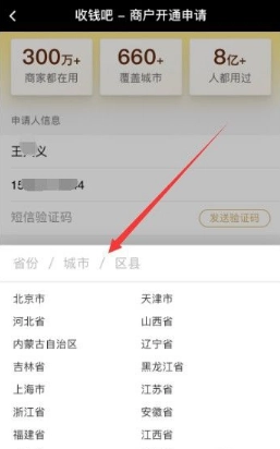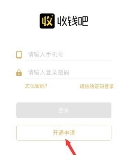 2、进入收钱吧,点击下方的“开通申请”,具体位置如图所示。