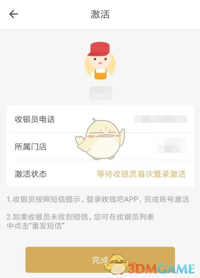 4、完成收银员添加后,收银员需依据短信提示登录收钱吧app,方可完成账号激活。若收银员未收到短信,店长可登录收银员列表,点击“重发短信”。