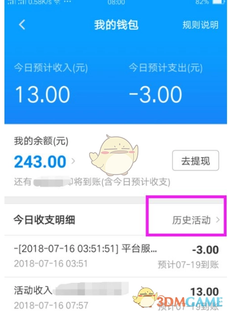 3、能够查看今日预计收入,点击其旁边的历史记录。