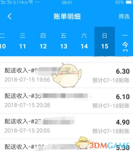 5、如此便能查看15日的配送状况以及收入明细状况了。