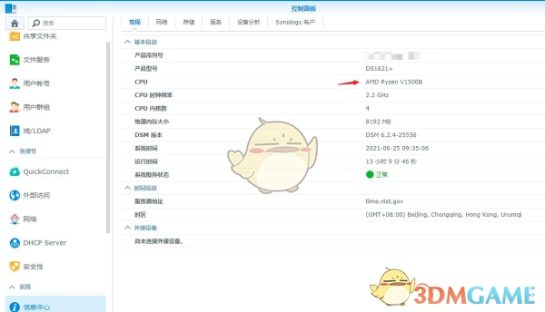 打开群晖管理后台–【控制面板】–【信息中心】–CPU