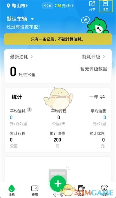 1. 第一步,打开小熊油耗app,接着点击右上角的【详单】选项。