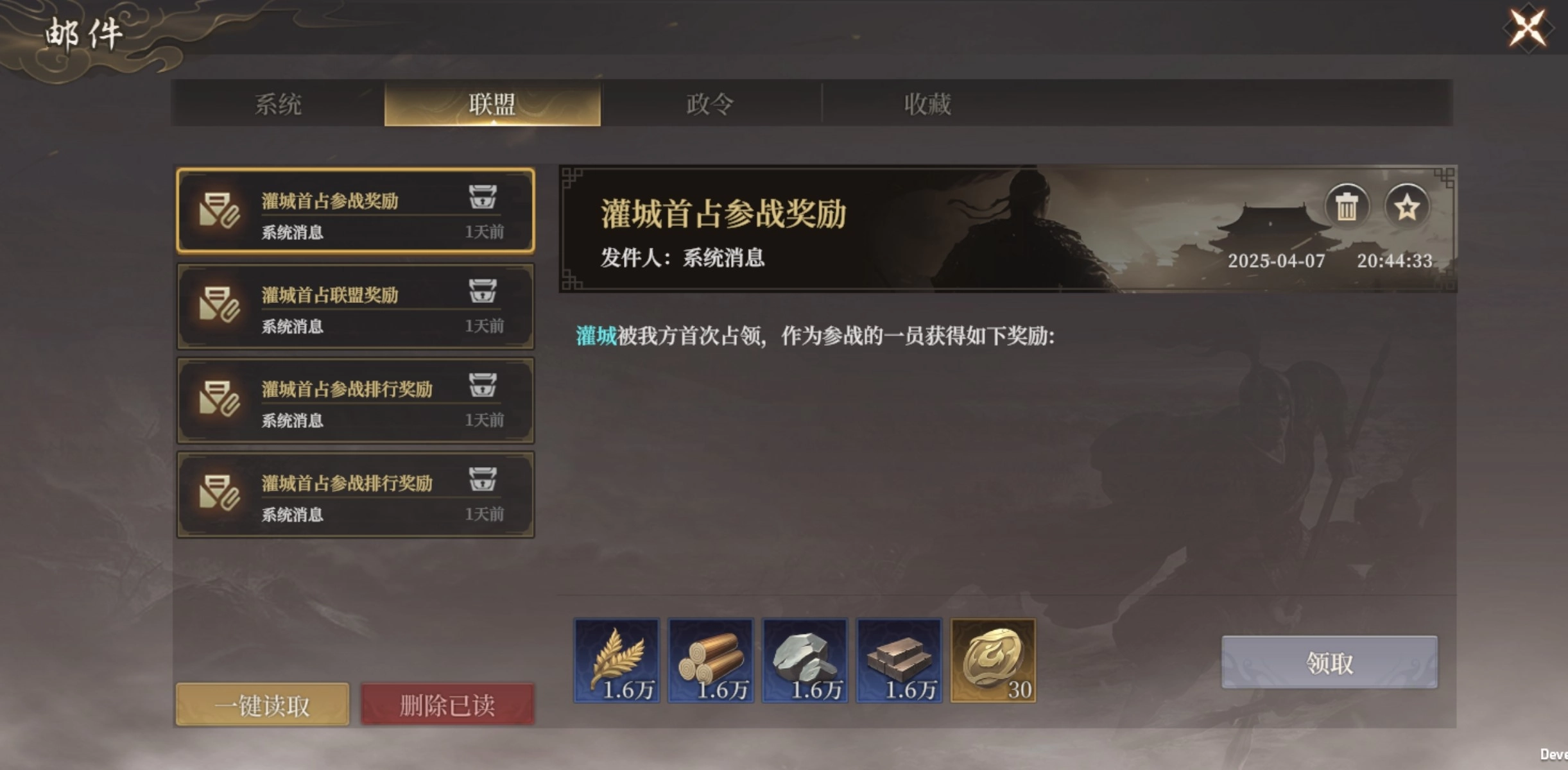 奖励获取:城池归属后,全联盟成员获得资源奖励外,同时可以在联盟商店,使用贡献点兑换建筑武将术法等进阶材料(木材、术法经验、灵萃等等)。