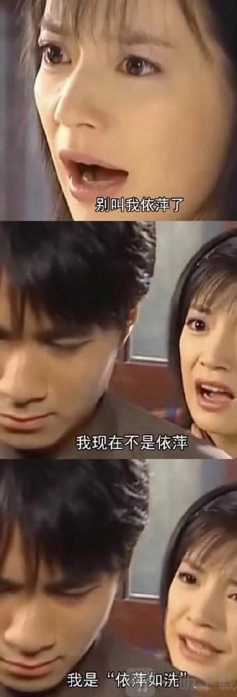如果看过《情深深雨蒙蒙》的小伙伴们应该知道,里面有依萍这个角色,“依萍如洗”这个梗就是出自这个电视剧里的经典台词。简直是相当经典的依据对白了。其中原话为“我现在不是依萍,我是依萍如洗’”。