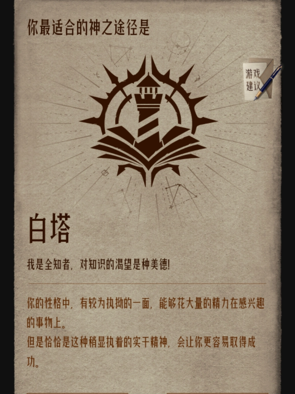 - 序列0白塔:神话生物形态为一座虚幻的高塔,是全知的神。